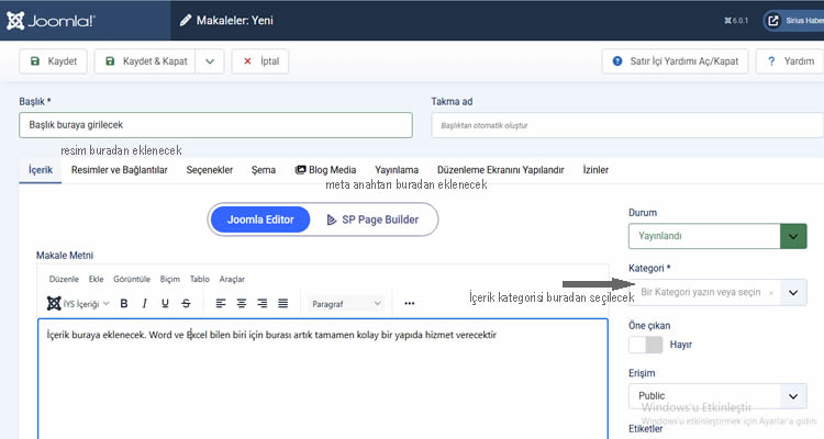 Joomla 6 bir web sitesine makele nasıl eklenir? Sirius Haber adlı haber sitesi üzerinden resimli anlatım yaparak joomla severlere özel bir bilgi sunacağız.