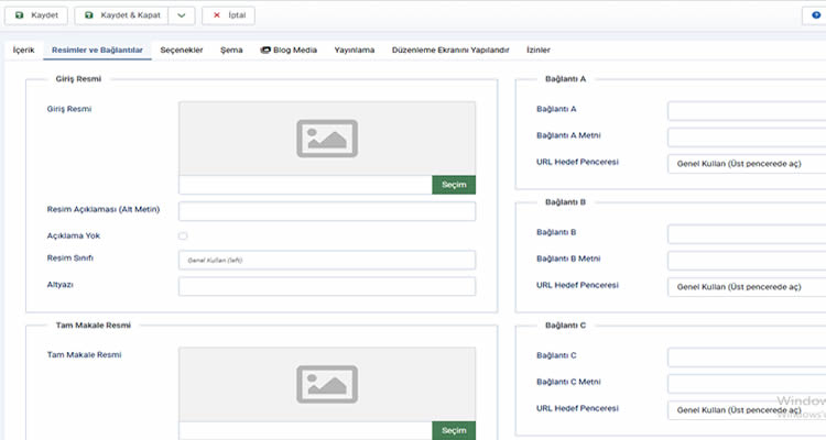 Joomla 6 veya 5x'de resmi ekleme oldukça kolaydır. Resim ve bağlantılara tıklayın. Görseli bilgisayarınızdan veya kaynağında upload edin. Ortam klasörüne eklenen resmi seçin ve ekleyin. Resmi ekleme bölümü iki bölümden oluşmaktadır. Birinci resim kategori bölümünde blog şeklinde görünecek resim. İkinci eklenecek resim ise makale açıldığında başlığında görülecek resimdir.